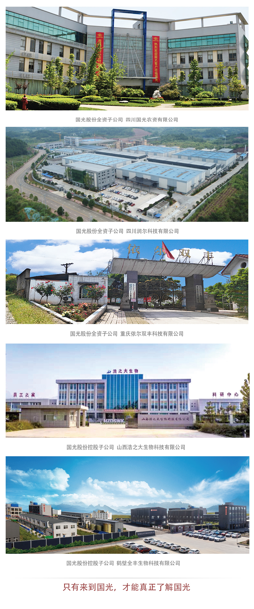 公司下屬的四川國光農(nóng)資有限公司、四川國光園林科技有限公司、四川潤爾科技有限公司、重慶依爾雙豐科技有限公司、山西浩之大生物科技有限公司、鶴壁全豐生物科技有限公司、四川蕓領(lǐng)農(nóng)業(yè)技術(shù)服務(wù)有限公司、成都國光現(xiàn)代農(nóng)業(yè)職業(yè)技能培訓(xùn)學(xué)校有限公司等十五家公司分布于四川省、山西省、河南省、海南省、重慶市等。ㄖ陛犑校⒃谌珖O(shè)有二十五個物流倉儲服務(wù)中心。公司堅持“敬業(yè)、高效、務(wù)實、創(chuàng)新”的企業(yè)精神,聚焦調(diào)節(jié)劑、水溶性肥料、園林養(yǎng)護品等優(yōu)勢品類,堅持“全員服務(wù)、創(chuàng)造價值;全心服務(wù),成就用戶”的服務(wù)理念,突出技術(shù)服務(wù)的核心作用,產(chǎn)品在配合綠色防控、提質(zhì)減量、抗災(zāi)減害、減少人工、配合機械化等方面起著重要作用,“國光”“雙豐”“浩之大”“國光園林”“鶴壁全豐”品牌影響力持續(xù)擴大。