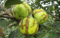 葉片染病葉背面現(xiàn)黃色、裸露的夏孢子堆,大小0.2—0.4mm,圓形至橢圓形,包被破裂后變?yōu)槌赛S色,后又褪為淺黃色,在與夏孢子堆對應(yīng)的葉正面現(xiàn)紅褐色斑塊...