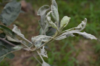 蘋(píng)果白粉病以菌絲在冬芽鱗片間或鱗片內(nèi)越冬。翌年發(fā)芽時(shí),越冬菌絲產(chǎn)生分生孢子,此孢子靠氣流傳播,直接侵入新梢。病害侵入嫩芽、嫩葉和幼果主要在花后一個(gè)月內(nèi),所以5月為發(fā)病盛期,通常受害最重的是病芽抽出新梢。生長(zhǎng)季中病菌陸續(xù)傳播侵害葉片和新梢,病梢上產(chǎn)生有性世代,子囊殼放出子囊孢子行再侵染。秋季病梢上的孢子侵入秋梢嫩芽,形成二次發(fā)病高峰。10月以后很少侵染。春暖干旱的年份有利于病害前期流行。