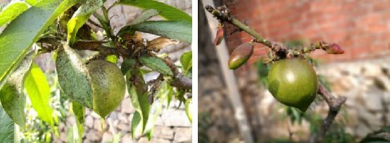 蚜蟲產(chǎn)生的蜜露污染幼果和葉片 蚜蟲為害導(dǎo)致葉片早落