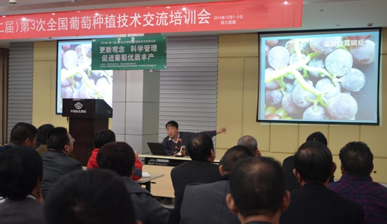 2014年12月1日—5日,由中國農(nóng)學(xué)會(huì)葡萄分會(huì)、中國果品流通協(xié)會(huì)葡萄分會(huì)主辦,中國農(nóng)藥發(fā)展與應(yīng)用協(xié)會(huì)植物生長調(diào)節(jié)劑專業(yè)委員會(huì)、國光承辦的2014年(第二屆)第三次全國葡萄種植技術(shù)交流培訓(xùn)會(huì)在國光召開,來自安徽、湖北、四川、山西、江蘇等地的200余名葡萄種植戶參加了會(huì)議。