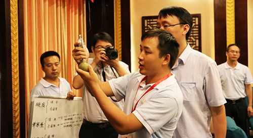會(huì)議期間,領(lǐng)導(dǎo)、專家和種植大戶們到國光獼猴桃一體化管理示范園進(jìn)行了觀摩考察。中國農(nóng)科院植保所李香菊研究員主持召開了品質(zhì)鑒定大會(huì),對果品外觀、口感以及單果重、硬度、可溶固形物等數(shù)據(jù)指標(biāo)進(jìn)行現(xiàn)場測定和品質(zhì)鑒定。中國植物生長調(diào)節(jié)劑專委會(huì)胡興啟主任(湖北省農(nóng)業(yè)廳原副廳長、總農(nóng)藝師)宣讀了品質(zhì)鑒定結(jié)果:通過品鑒,領(lǐng)導(dǎo)、專家和種植大戶代表一致認(rèn)為,用氯吡脲浸果處理的獼猴桃不僅能顯著提高產(chǎn)量,而且甜度增加,口感好,果型勻稱,商品性好,能大大提高種植收益。