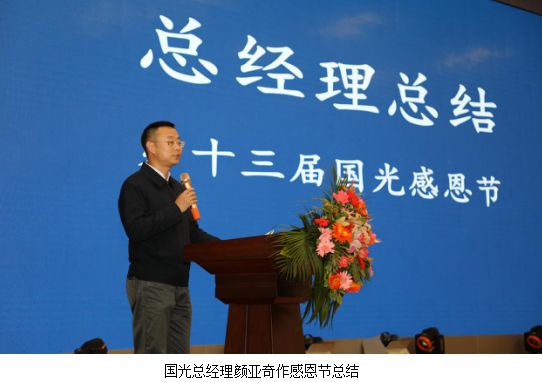 國(guó)光總經(jīng)理顏亞奇作了感恩節(jié)總結(jié),表示:“一個(gè)真正愛護(hù)員工的企業(yè),會(huì)對(duì)員工的健康、家庭、子女各方面進(jìn)行關(guān)心,此次我們擴(kuò)展感恩節(jié)的內(nèi)容及形式,邀請(qǐng)國(guó)學(xué)老師幫助員工建立良好的家風(fēng)家教;通過(guò)案例幫助員工教育好子女;進(jìn)行了職業(yè)健康、法制、防止上當(dāng)受騙等教育,都是公司對(duì)員工及員工家屬具體感恩行動(dòng)的表現(xiàn),這些教育起到的作用遠(yuǎn)大于物質(zhì)和金錢。國(guó)光是一個(gè)大家庭,國(guó)光每一位員工都是大家庭中的一份子,只有每一位成員的小家過(guò)好,國(guó)光這個(gè)大家才會(huì)好,我希望全體國(guó)光人都能從本次感恩節(jié)教育中得到啟發(fā),從中受益,為自己的‘小家’也為共同的‘大家’活出更好的自己,貢獻(xiàn)更多的力量。”