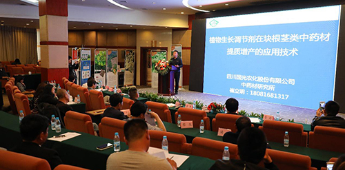 在專(zhuān)家座談中,四川省中藥行業(yè)協(xié)會(huì)會(huì)長(zhǎng)石才金;四川大學(xué)華西藥學(xué)院教授張浩;四川省中醫(yī)藥科學(xué)院教授舒光明;四川農(nóng)業(yè)大學(xué)教授田孟良;四川省農(nóng)科院經(jīng)作所研究員張超;四川省農(nóng)業(yè)廳高級(jí)農(nóng)藝師李濤等領(lǐng)導(dǎo)、專(zhuān)家作了專(zhuān)題演講,國(guó)光作物調(diào)控技術(shù)研究院中藥材所負(fù)責(zé)人就植物生長(zhǎng)調(diào)節(jié)劑在塊根莖類(lèi)中藥材提質(zhì)增產(chǎn)的應(yīng)用技術(shù)進(jìn)行了分享。