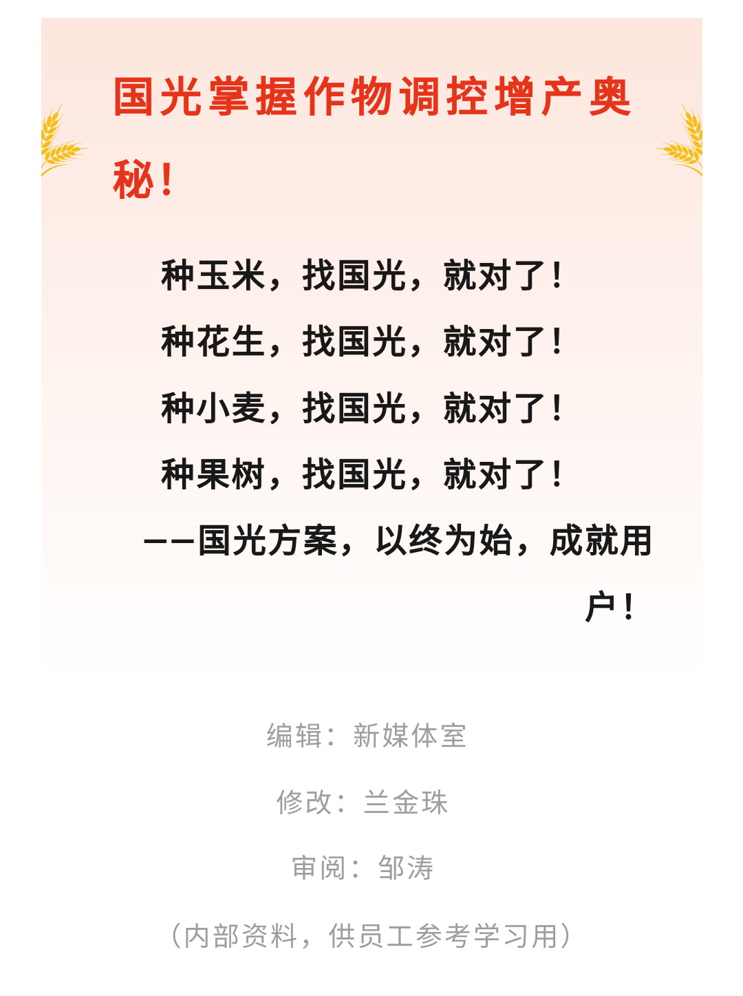 當(dāng)前位置:網(wǎng)站首頁(yè) > 新聞資訊 > 國(guó)光小麥全程方案實(shí)測(cè)驗(yàn)收:增產(chǎn)率高達(dá)19.4%,畝增收近300元!——國(guó)光小麥全程方案山東實(shí)測(cè)驗(yàn)收會(huì)于6月6日在山東聊城隆重召開