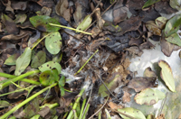 癥狀:病害多在花生成株期發(fā)生,主要為害莖部、果柄及莢果。發(fā)病初期病部變褐軟腐,其上出現(xiàn)波紋狀病斑。病斑表面長出一層白色絹狀絲菌絲體,在合適條件下菌絲蔓延至植株中下部莖桿,并在分枝間、植株間蔓延。土壤潮濕隱蔽時,病株周圍土表植物殘體和有機(jī)質(zhì)上也布滿一層白色菌絲體。在菌絲體中形成很多球狀菌核。受害莖基部組織腐爛,皮層脫落,剩下纖維狀組織。病株葉片變黃,邊緣焦枯,最后枯萎而死,受侵害果柄和莢果長出很多白色菌絲,呈濕腐狀腐爛。