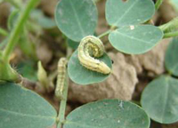 癥狀:在花生尚未出土?xí)r,蚜蟲就能鉆入土內(nèi)在幼莖嫩芽上危害,花生出土后,多在聚集頂端心葉及嫩葉背面吸取汁液,受害后的葉片嚴(yán)重卷縮。開花后主要聚集于花萼管及果針上危害,果針受害雖能入土,但莢果不成實(shí),秕果多。受害嚴(yán)重的花生,植株矮小,生長停滯。猖獗發(fā)生時,蚜蟲排出大量蜜露,引起霉菌發(fā)生,使花生莖葉變黑,甚至整株枯萎死亡。