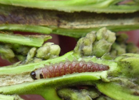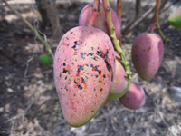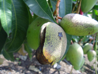 癥狀:薊馬是芒果產(chǎn)區(qū)梢期、花期和幼果期危害較為嚴(yán)重的害蟲之一。薊馬好吸食幼嫩組織。吸食果汁后,果表面起小疙瘩造成果皮粗糙,危害嚴(yán)重時候造成芒果失去商品性。危害較輕者也是芒果生產(chǎn)后期產(chǎn)生“露水斑”、“老年斑”的可能原因之一。