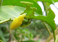 癥狀:金龜子的種類很多,危害芒果主要是銅綠麗金龜。銅綠麗金龜又名銅綠金龜子,是一種雜食性又是暴食性的害蟲,成蟲咬食花穗、嫩梢、幼果,食量大,數(shù)量多,危害嚴(yán)重。其幼蟲蠐螬俗稱雞蟲,是重要的地下害蟲。