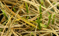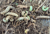 1.年發(fā)生代數(shù) 一年4-5代,在山東和浙江經(jīng)調(diào)查都是如此。以蛹在土下3-5厘米處越冬。(以危害白三葉為例:2代開(kāi)始(7月上旬)在三葉草草坪上開(kāi)始為害,出現(xiàn)一個(gè)個(gè)蟲(chóng)團(tuán);3、4代(8-9月)為害加重,為主害代,并出現(xiàn)世代重疊,能成片成片吃光草坪,使綠化景觀效果遭受到嚴(yán)重的破壞。)