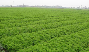 川芎8月份栽種后,莖節(jié)上的腋芽隨機(jī)萌動(dòng),抽動(dòng)幼葉,栽后的第1個(gè)月地上部生長(zhǎng)緩慢。9月中旬至12月份前地上部旺盛生長(zhǎng),葉內(nèi)干物質(zhì)逐漸積累,地下根莖生長(zhǎng)較慢,12月份前地上部生長(zhǎng)基本穩(wěn)定,12月份后轉(zhuǎn)入地下根莖干物質(zhì)積累,根莖迅速膨大,因此此時(shí)正是根莖迅速膨大和積累干物質(zhì)的關(guān)鍵時(shí)候,通過有效的化學(xué)調(diào)控可以顯著的提高川芎的產(chǎn)量和干物質(zhì)的積累。2013年彭州市敖平鎮(zhèn)川芎種植戶劉應(yīng)芝使用以下化學(xué)調(diào)控技術(shù),其川芎增產(chǎn)率達(dá)到20%以上。具體使用技術(shù)如下: